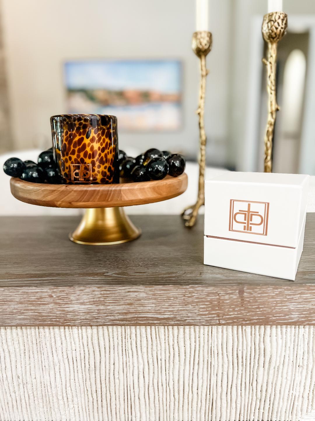 10 oz Coconut Soy Wax Blend Candle in a 11 oz "Tortoise Shell" Handcrafted Glass Vessel. Comes with Premium Gift Box.